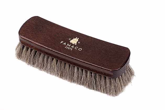 Après application, laisser sécher le crème 10 à 20 minutes au maximum, puis brosser les chaussures à l’aide de la Brosse à Reluire Luxe Famaco afin d’éliminer les excédents de crème.