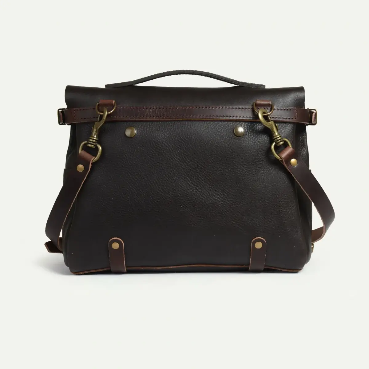 Soufflets réglables sur le côté. Trois poches extérieures dont une sous rabat.