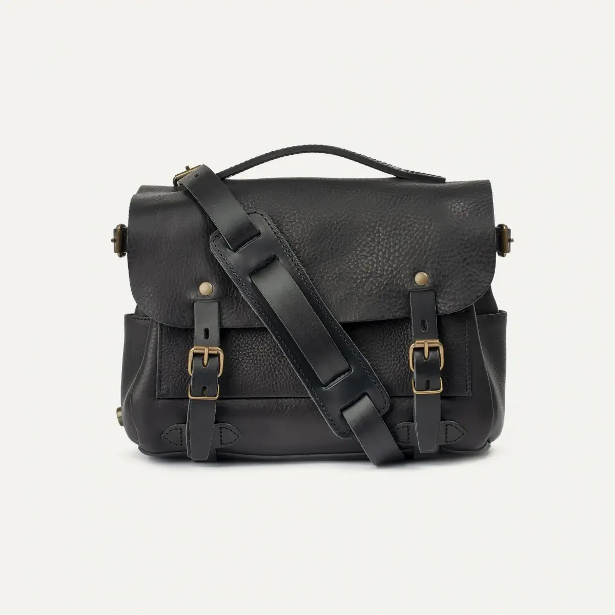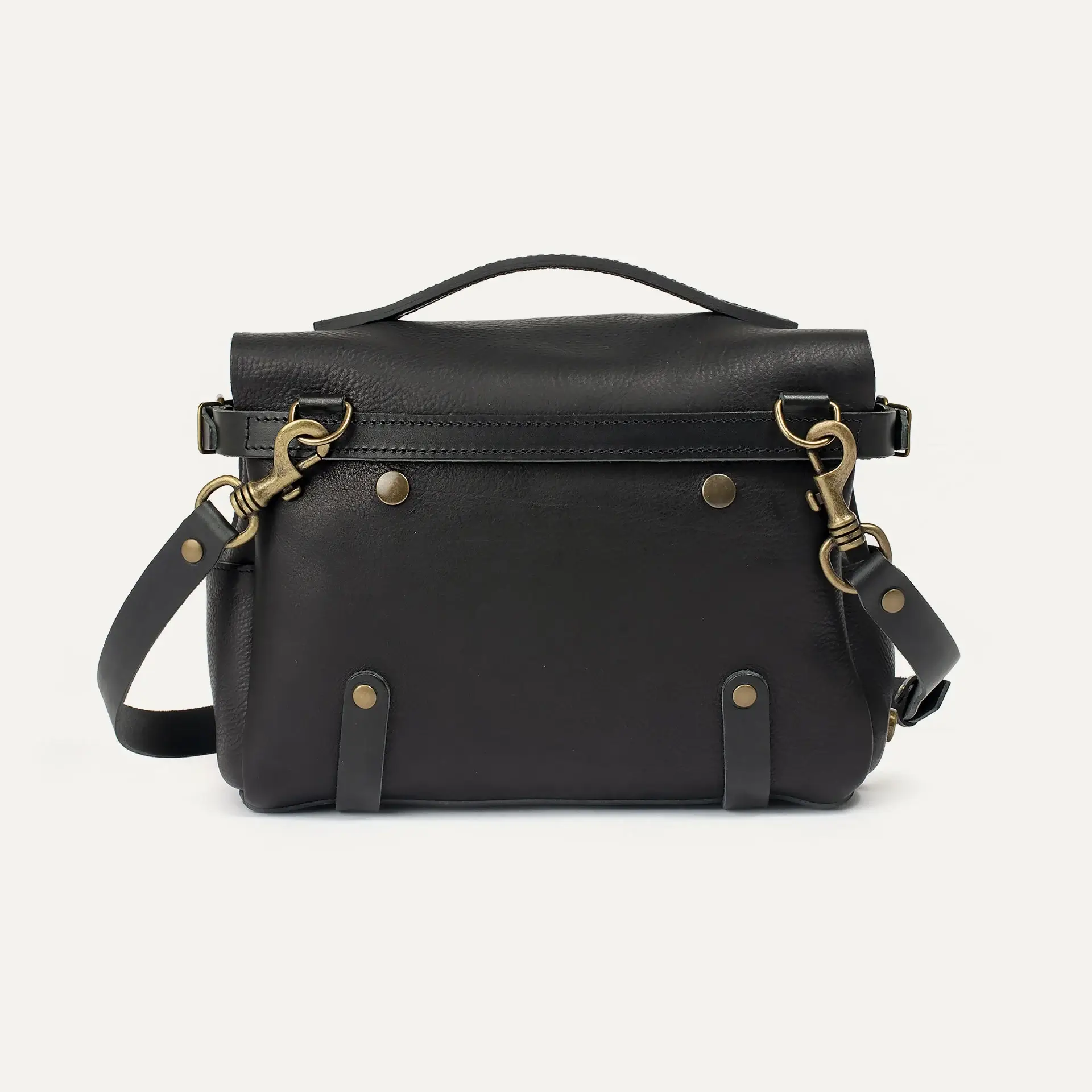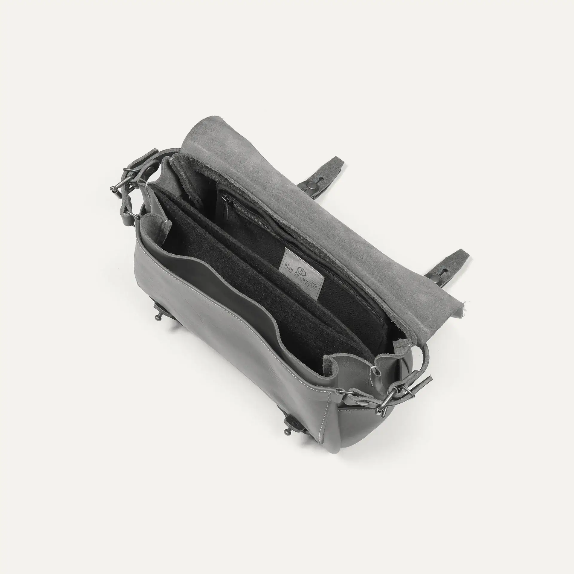 – Bandoulière en cuir amovible avec patte d’épaule doublée feutrine.