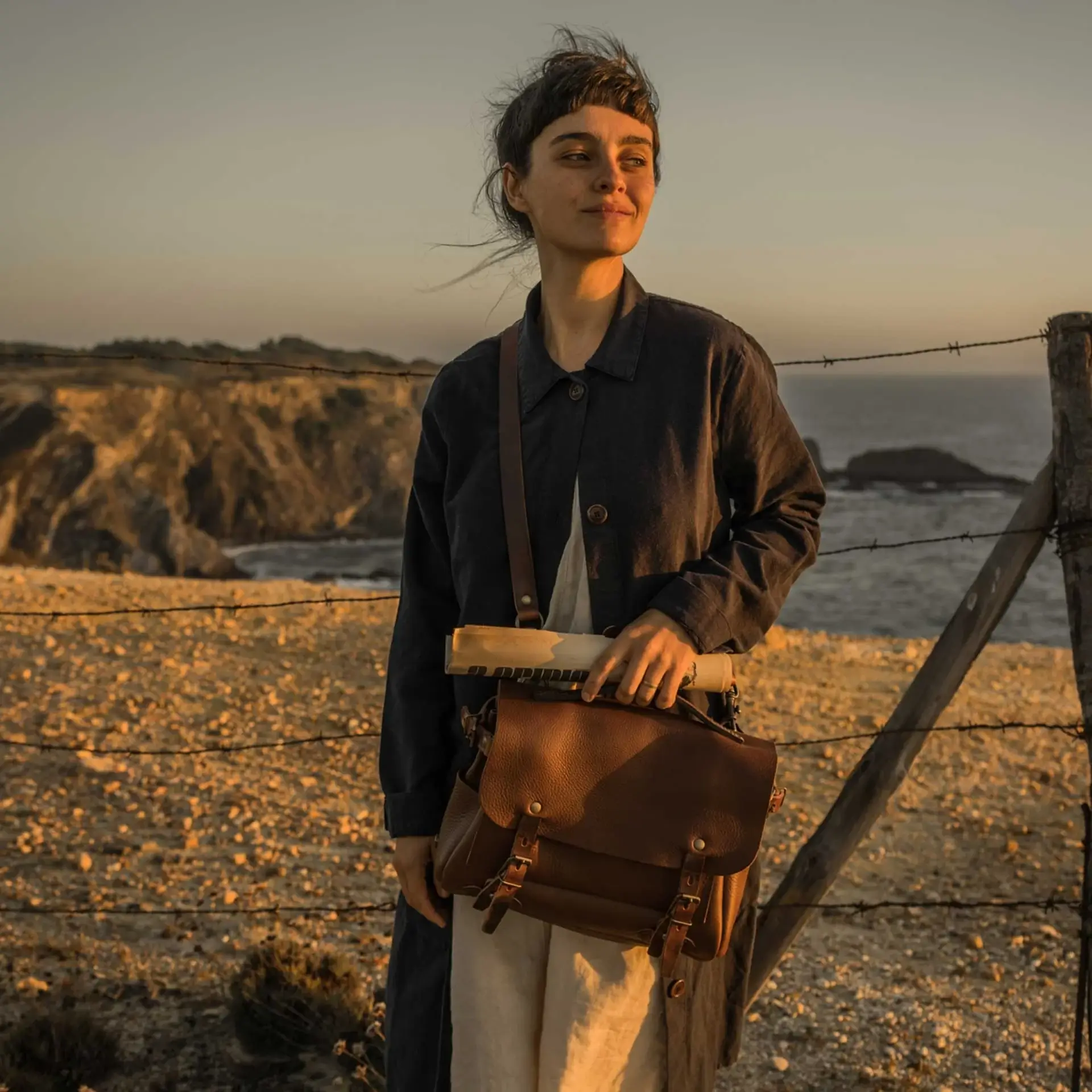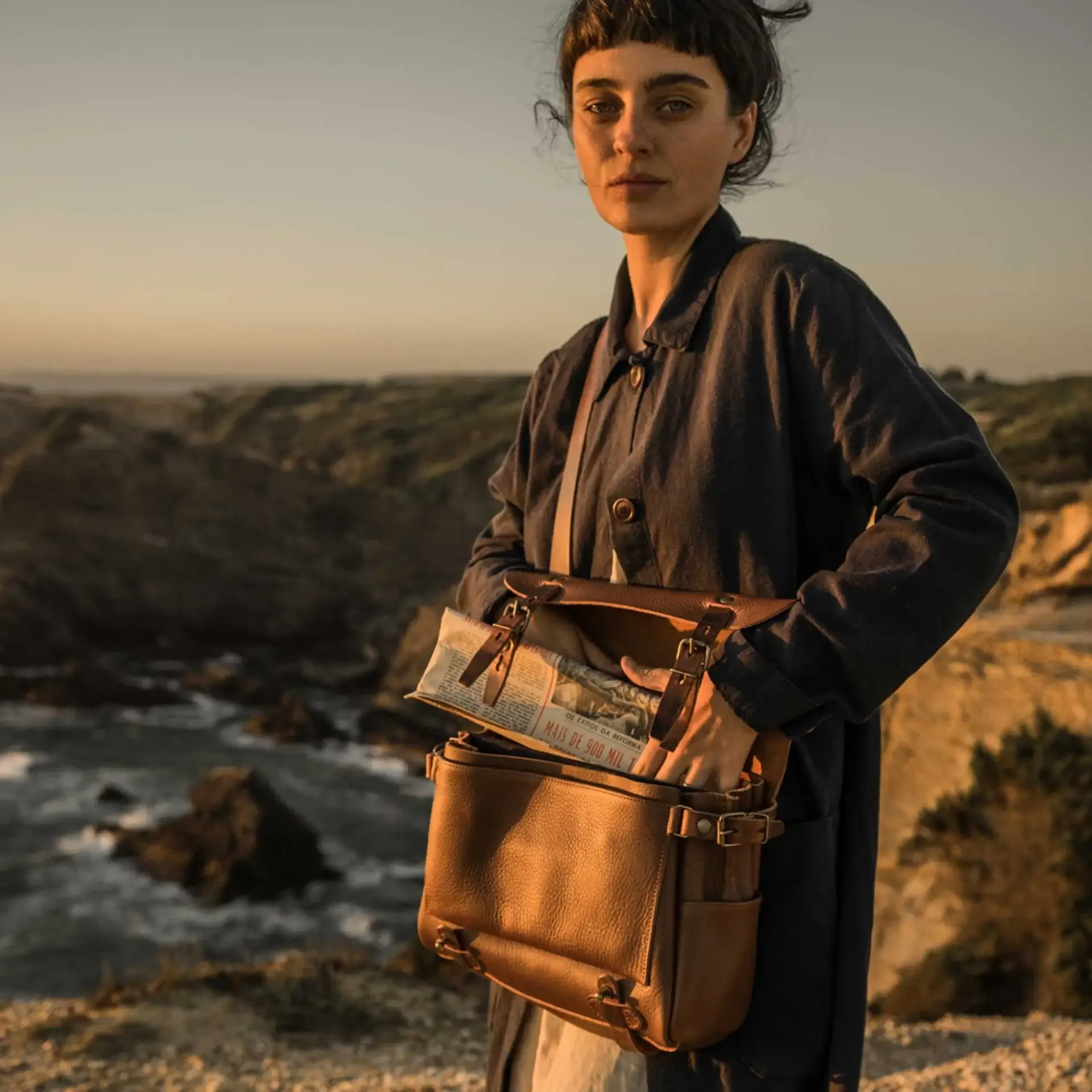 Sac bandoulière en cuir tanné végétal.