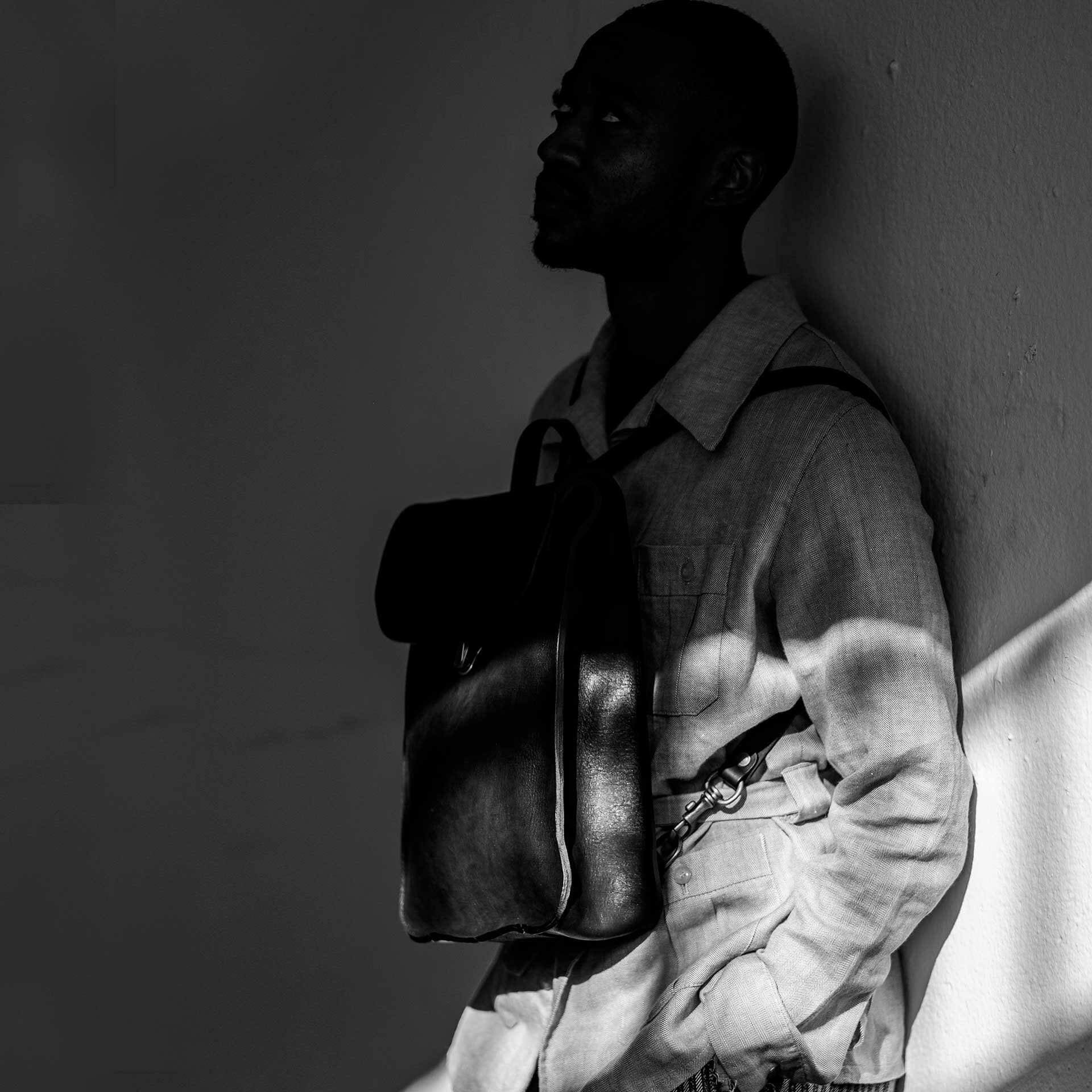 Le sac à dos Puncho (Taille M) est le nouveau sac à dos moyen format de la collection bleu de chauffe, fabriqué en cuir tanné végétal.
