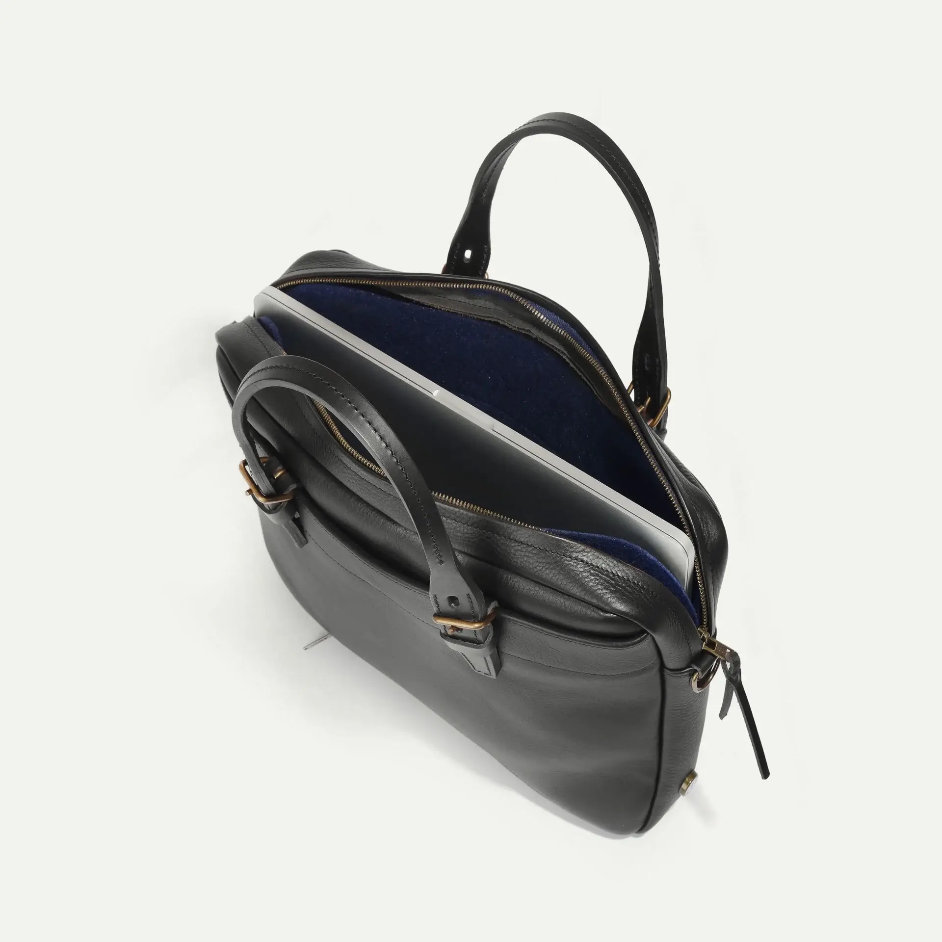 Le nouveau Porte document Folder en cuir tanné végétal se porte à la main ou en bandoulière. Business bag très fonctionnel avec  aménagements astucieux pour faciliter les déplacements: une protection pour ordinateur 13 pouces intégrée, une poche zippée intérieure et deux poches plaquées à l’extérieur. Bandoulière amovible avec patte d’épaule confortable doublée feutrine.