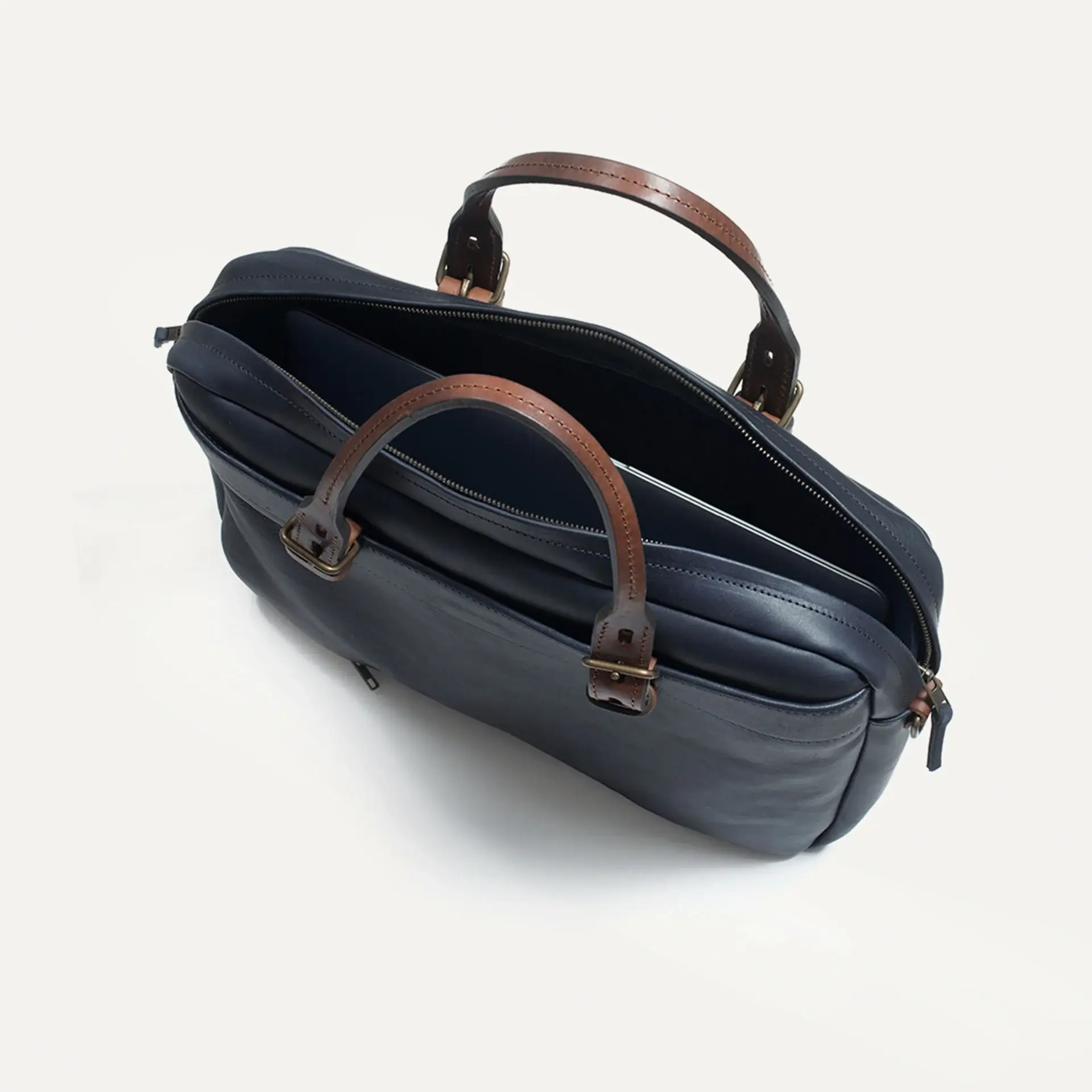 Le nouveau Porte document Folder en cuir tanné végétal se porte à la main ou en bandoulière. Business bag très fonctionnel avec aménagements astucieux pour faciliter les déplacements: une protection pour ordinateur 13 pouces intégrée, une poche zippée intérieure et deux poches plaquées à l’extérieur. Bandoulière amovible avec patte d’épaule confortable doublée feutrine.